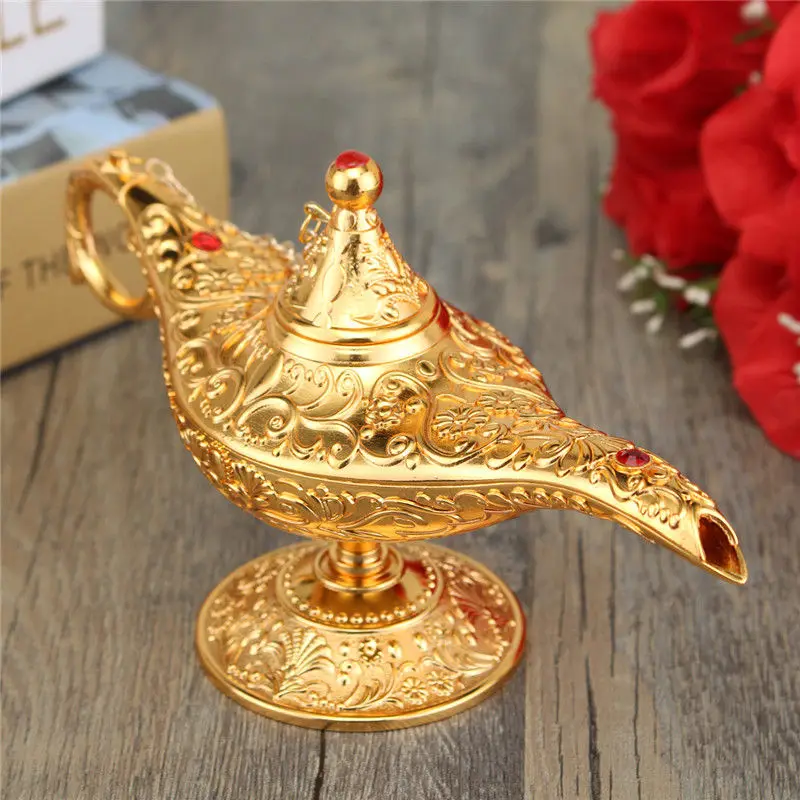 Comprar KiWarm Metal Esculpido Lâmpada Aladdin Luz Desejando Chá Pote de Óleo de Poupança de Decoração Colecionáveis Coleção Dom Das Artes Do Ofício Baratas Online Preço.