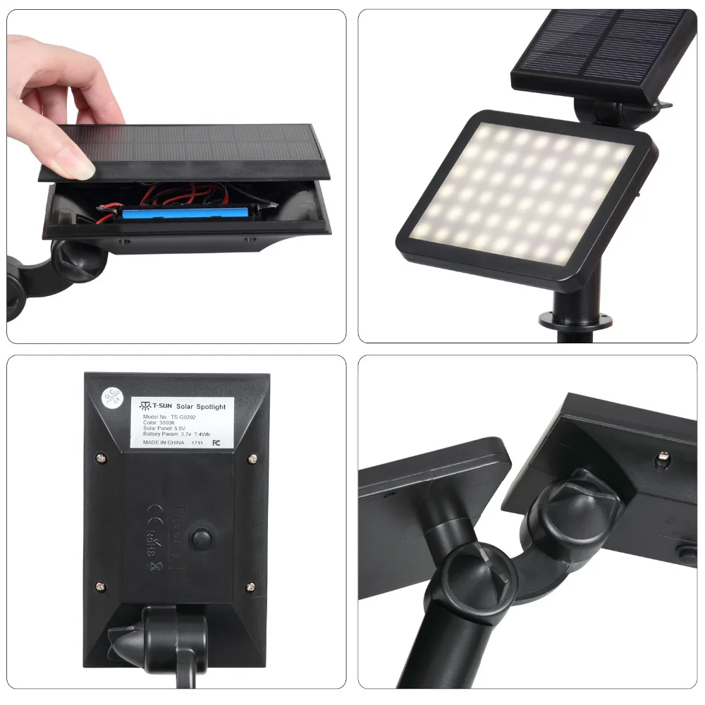Comprar T SUNRISE 2 PACK Solar Luz LED Spotlight Ajustável 48 LEVOU Ao Ar Livre Paisagem Iluminação À Prova D Água Luz de Parede para Jardim Quintal Baratas Online Preço.