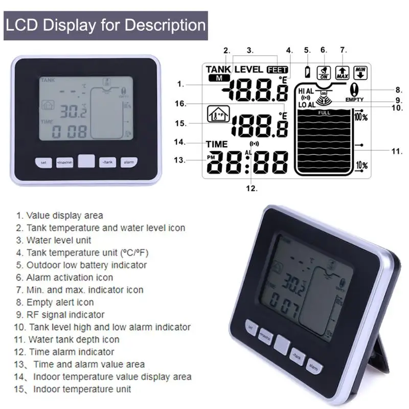 Comprar 0.5 m 15 m Ultrasonic Medidor de Nível de Líquido Do Tanque Sem Fio com Sensor de Temperatura Thermo ultrasonic Medidor de Nível de Água de Medição ferramentas Baratas Online Preço.