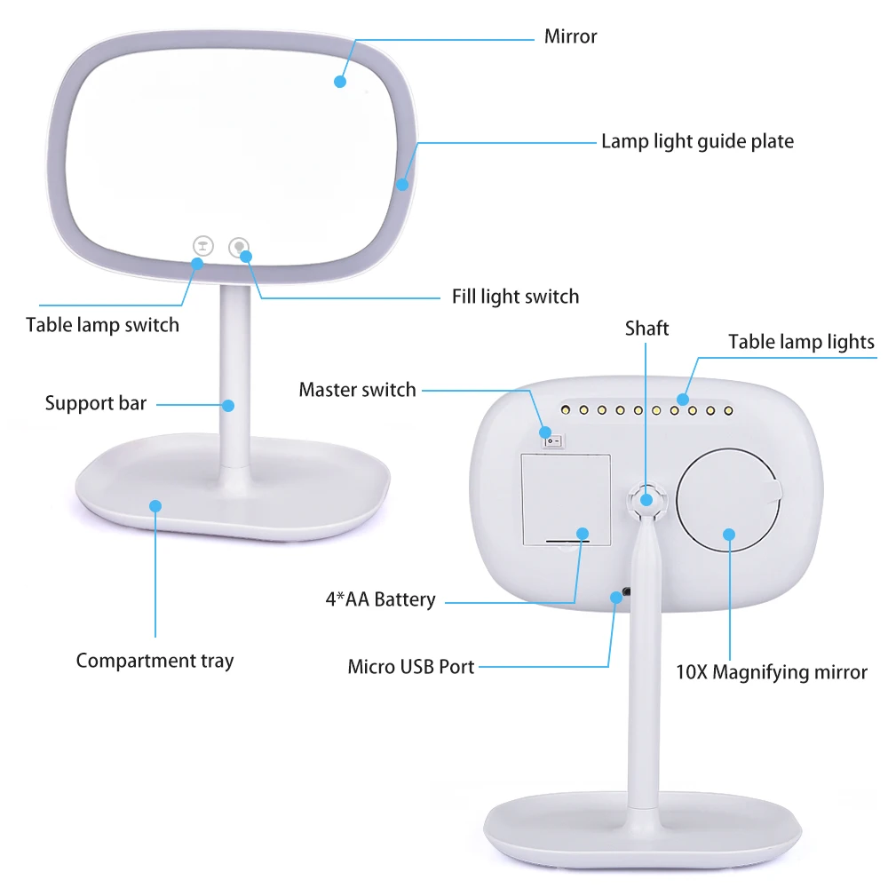 . Melhor 47 Luzes LED 360 Rotating Desktop Tela de Toque do Espelho Espelho de Maquiagem Beleza Espelho Espelho de Maquilhagem Profissional Ajustável Bancada Barato Online Preço.