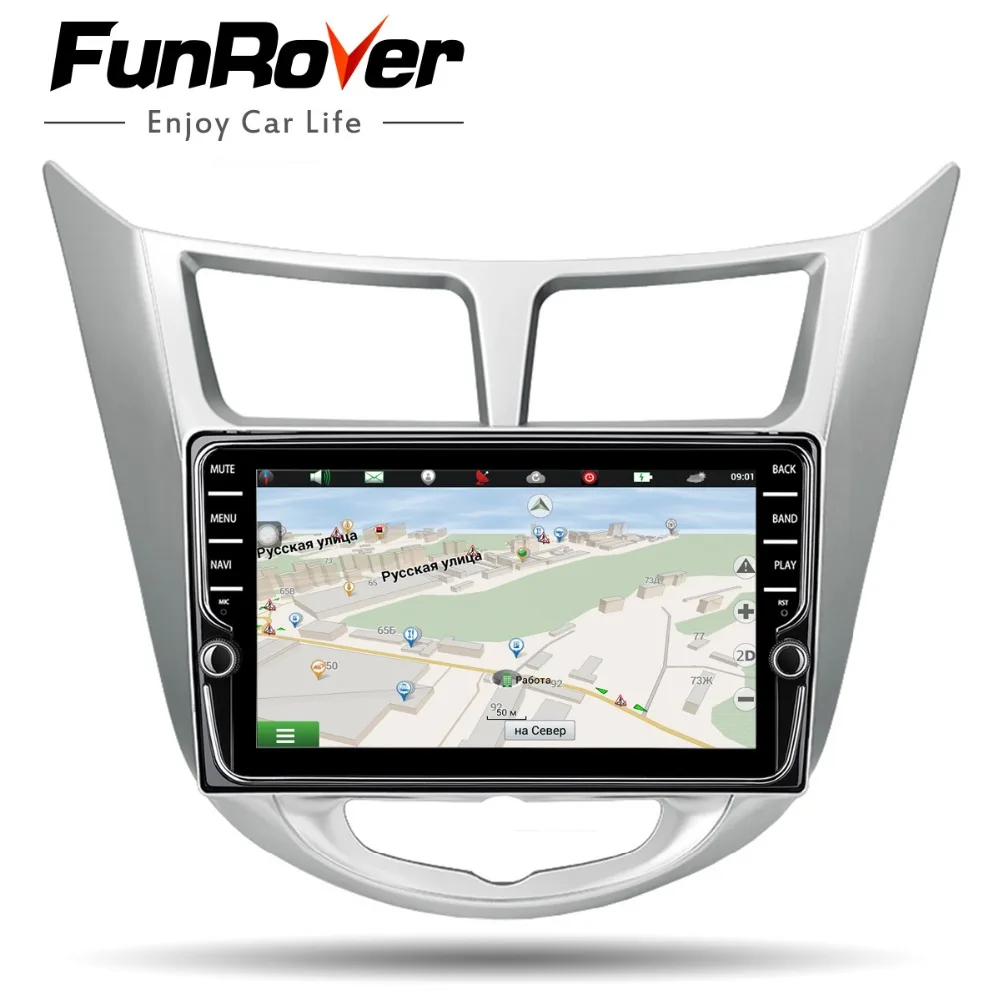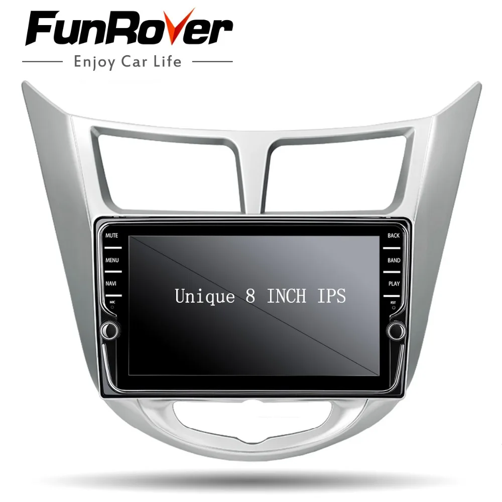 Comprar Funrover IPS Android 8.0 multimídia Carro dvd player de rádio gps para hyundai verna accent solaris 2011 2015 2 din autoradio estéreo Baratas Online Preço