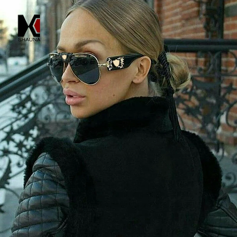 Comprar SHAUNA Ponte óculos de Sol Piloto Mulheres de Luxo de Couro PU Homens Da Moda UV400 Óculos de Sol Da Lente Do Espelho Baratas Online Preço.