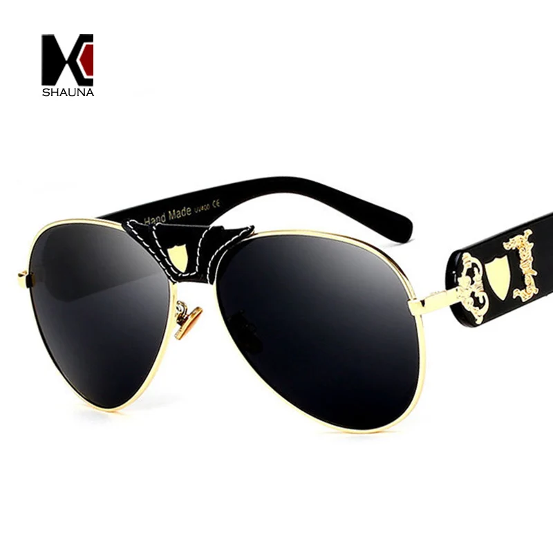 Comprar SHAUNA Ponte óculos de Sol Piloto Mulheres de Luxo de Couro PU Homens Da Moda UV400 Óculos de Sol Da Lente Do Espelho Baratas Online Preço
