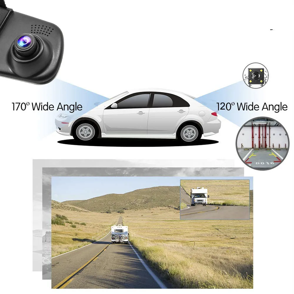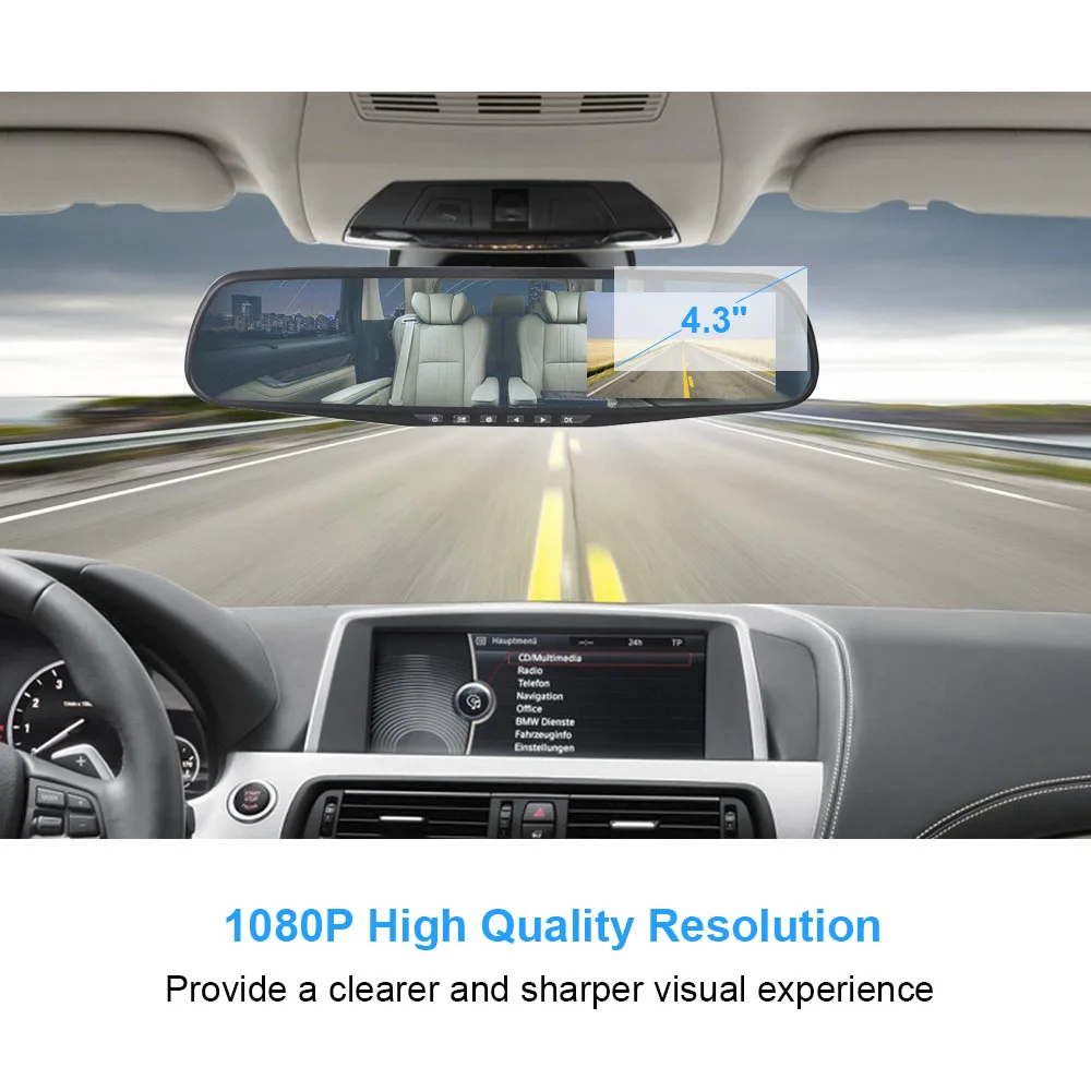 . Melhor HGDO 4.3 FHD 1080 p de Lente Dupla Espelho DVR Carro Traço Cam Gravador De auto Espelho Retrovisor Night Vision Rear visão Da Câmera registro de loop Barato Online Preço.