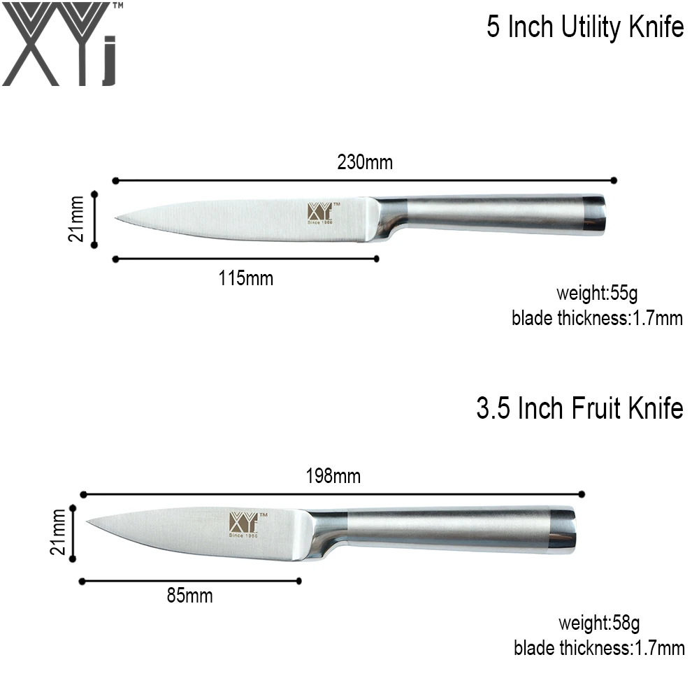 Comprar Nova Chegada Faca de Aço Inoxidável XYJ 8 Pcs Set Bar Apontador + Multifunções Descascador + Tesoura + 8 \"8\" 8 \"5\" 3.5 \"Faca de cozinha Baratas Online Preço.