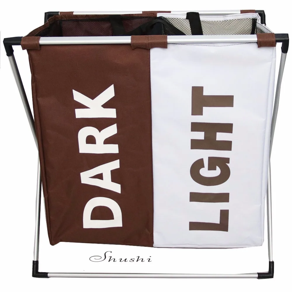 . Melhor Shushi dois compartimentos cesto de roupa dobrável de armazenamento do organizador casa banheiro à prova d água dois grade classificador de lavanderia balde Barato Online Preço.