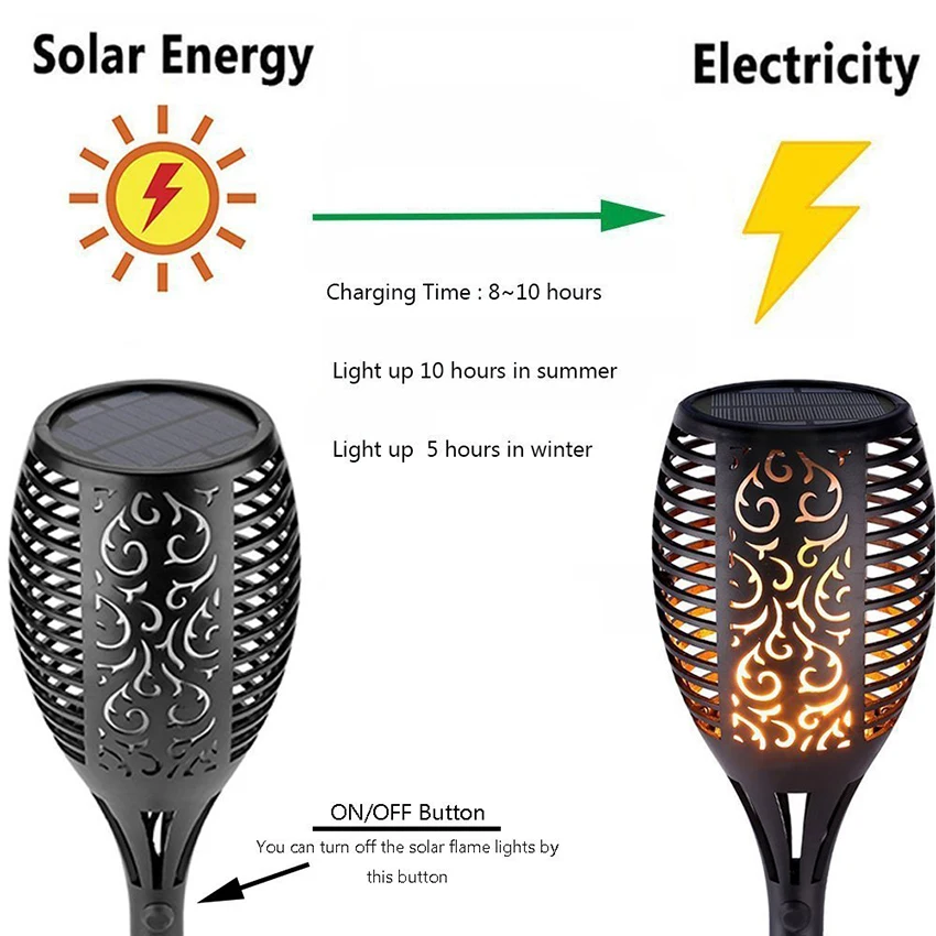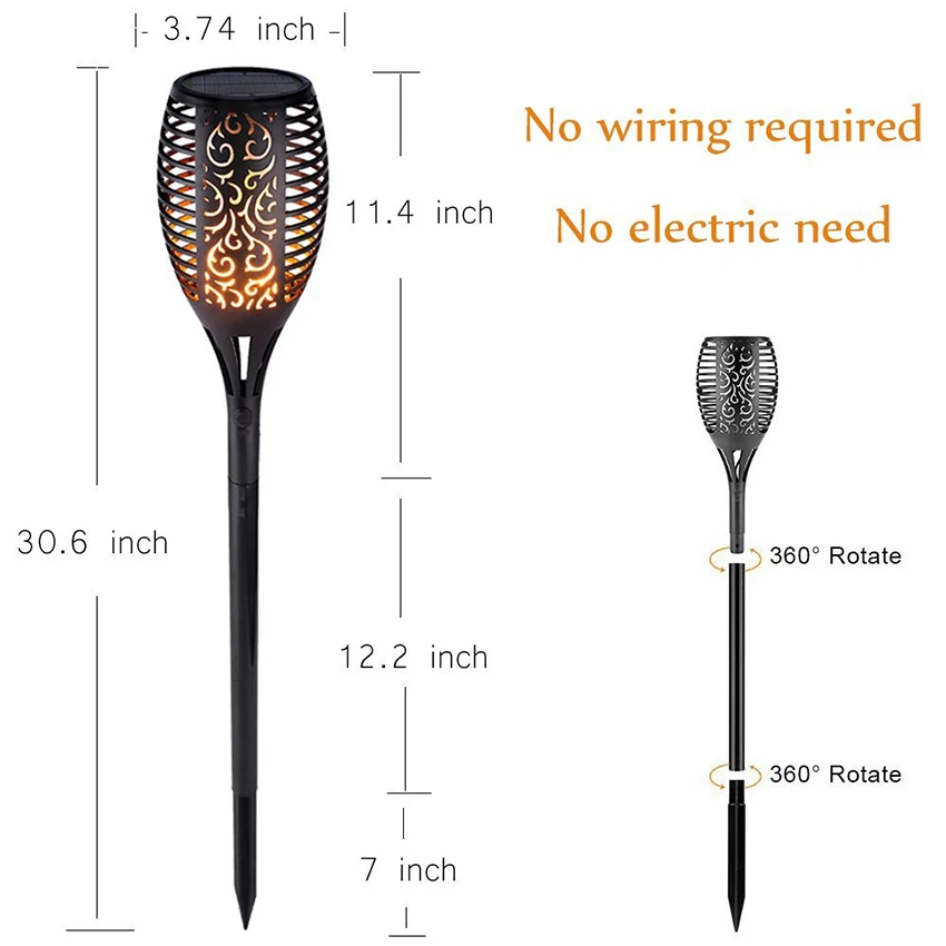 Comprar Solares 72 LEDs 96 LEDs LED Lâmpada Do Gramado Impermeável Dança Flicker Chama Da Tocha Luzes Decoração de Jardim Ao Ar Livre Caminho Luzes Paisagem Baratas Online Preço.