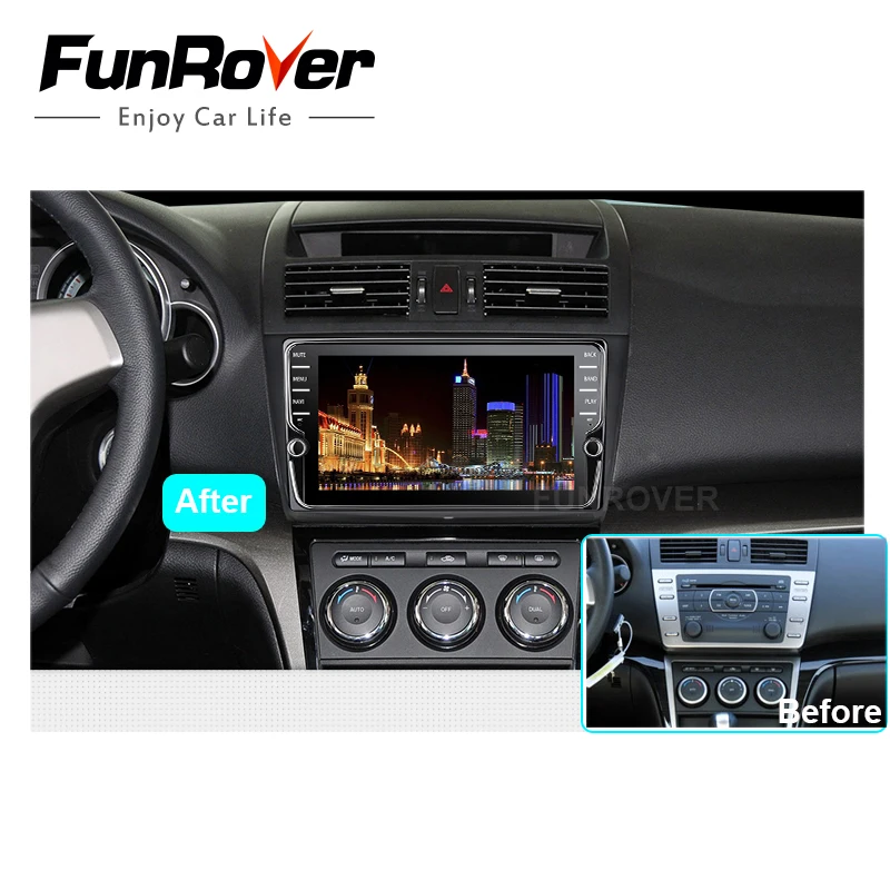 Comprar Funrover IPS 8 \"Android 8.0 6 2 din dvd player do carro para MAZDA 2008 2015 mazda6 gps estéreo gravador de rádio BT WIFI navi multimedia Baratas Online Preço.