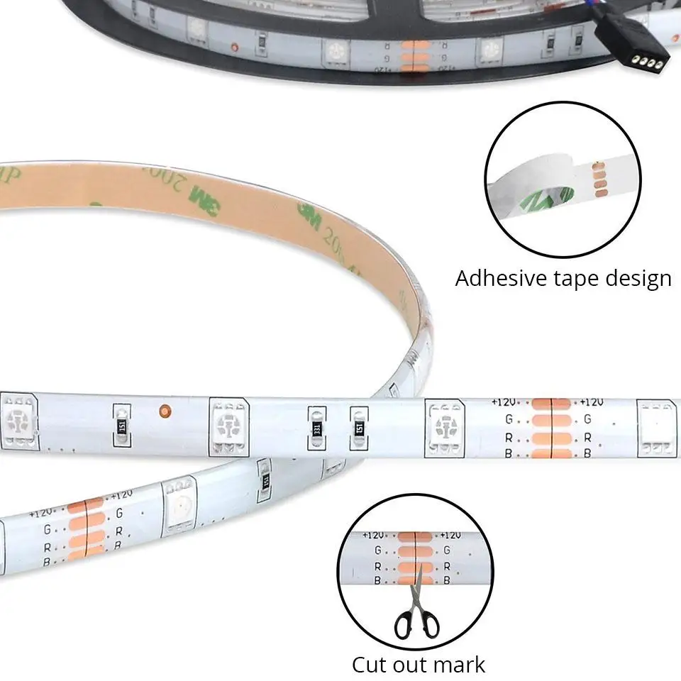 Comprar GUXEN 5050 RGB levou luz tiras 60 leds metro DC12v 5 tira conduzida metros roll à prova d água IP65 não impermeável IP20 para o balcão da Loja Baratas Online Preço.