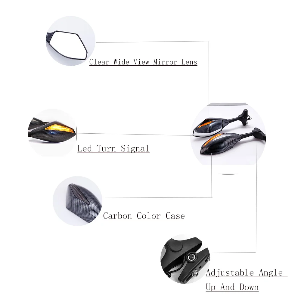 Comprar PRETO de CARBONO LED VIRE SINAL dos ESPELHOS PARA YAMAHA YZF 600R R6 FZ1 FZ6 R3 Baratas Online Preço.
