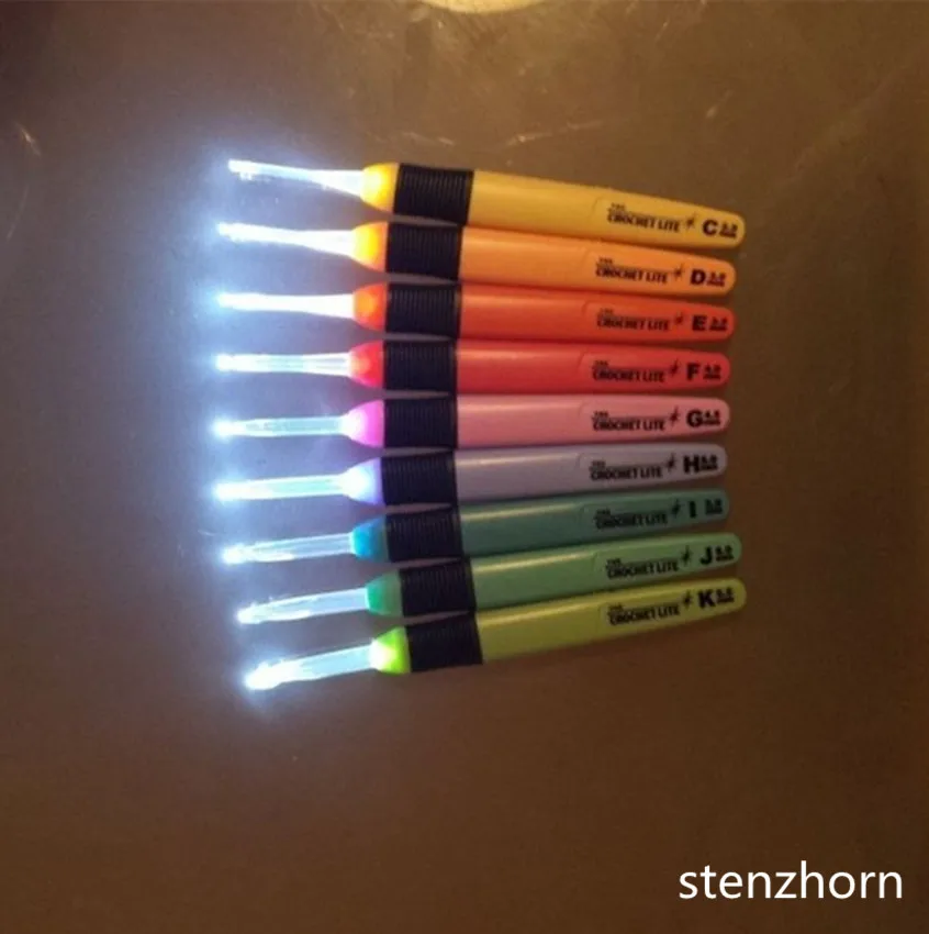 . Melhor 9 Pçs set Led Crochet Gancho Plástico Alça de Tricô Agulhas De Costura Acessórios Artesanato Tear Ferramenta 2.5 ~ 6.5mm Light Up crochê lite Barato Online Preço.