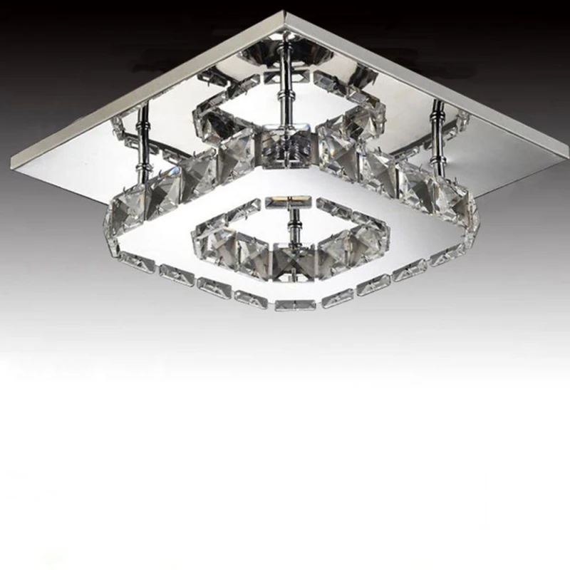 Comprar Aço Inoxidável de Cristal moderna Praça LED Luz de Teto Lâmpada Lustre Luminaria para Casa Cozinha Varanda Corredor Corredor Luminárias Baratas Online Preço.