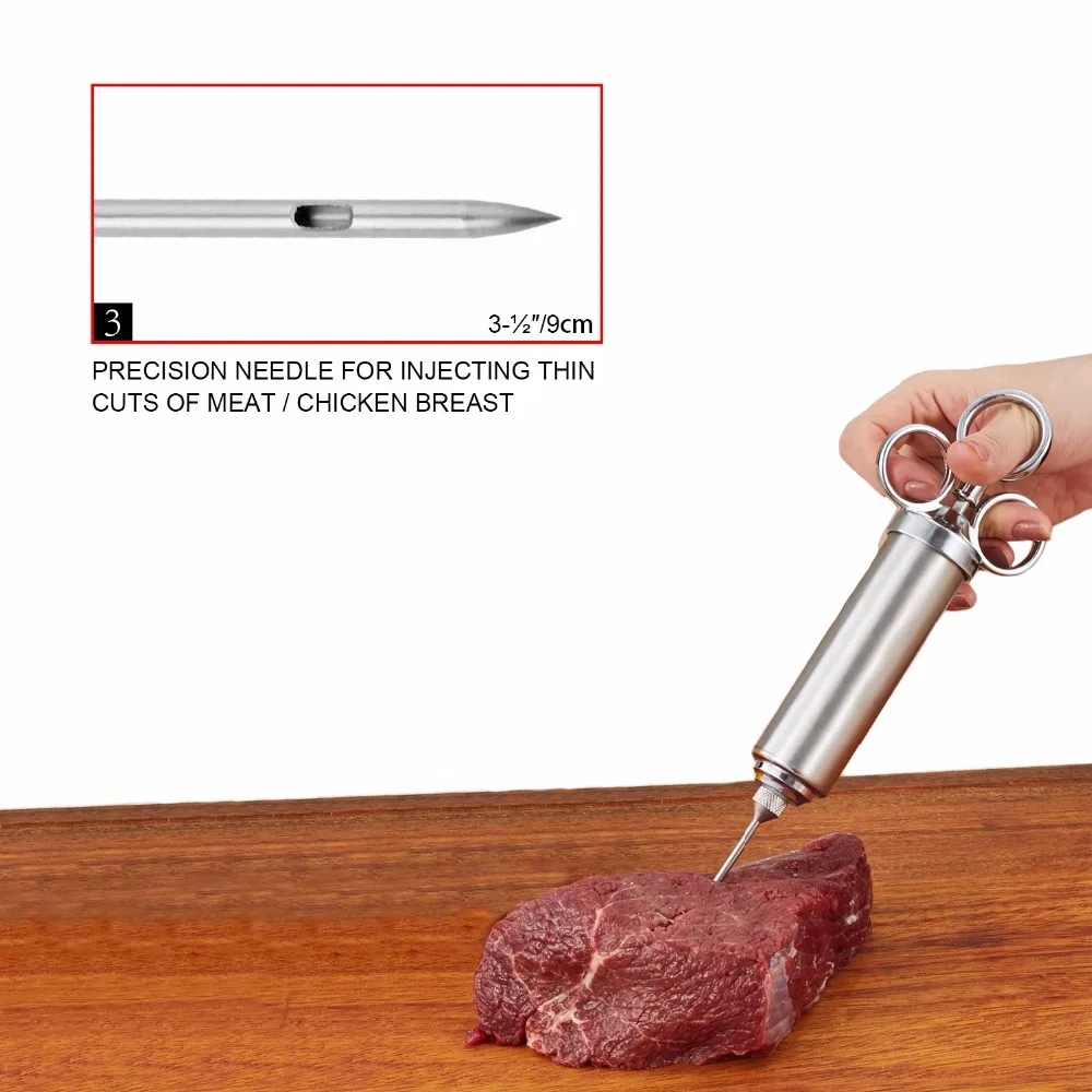 Comprar Novo 2 Oz Seringa Injector da Carne de aves de Capoeira Sabor Marinada Injetor Injetores de Carne Tempero PARA CHURRASCO Utensílios de Cozinha Kit com 3 Agulhas Baratas Online Preço.