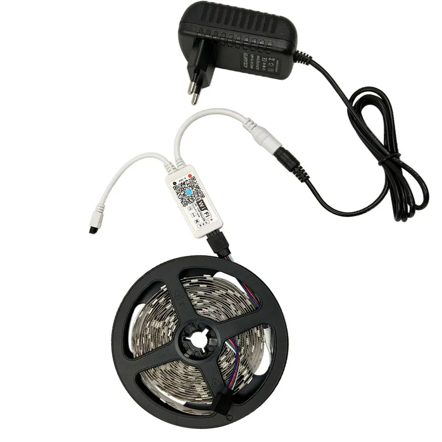 Comprar RGB Tira CONDUZIDA luz 5050 LEVOU Fita 5050 Set RGB 5 metro tira conduzida RGB Faixa Neon + Wi fi RGB LED Controlador Com adaptador ue DC12 Baratas Online Preço.