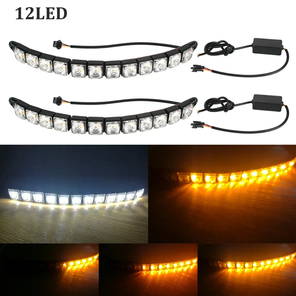Comprar 2 pcs 12LED Car COB Daytime Driving Nevoeiro DRL Faixa de Luz Flexível Running Luz Turn Signal Lâmpada para BMW Branco Virar Amarelo Fluindo Baratas Online Preço.