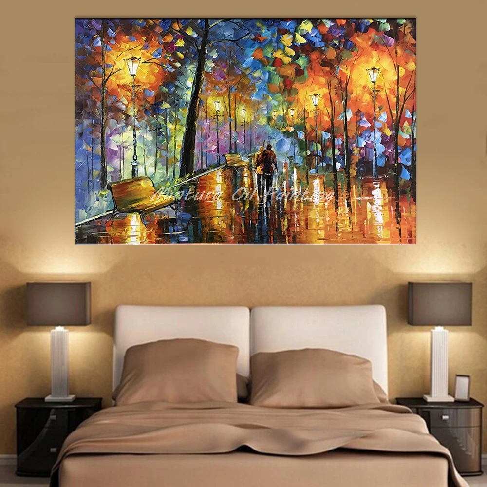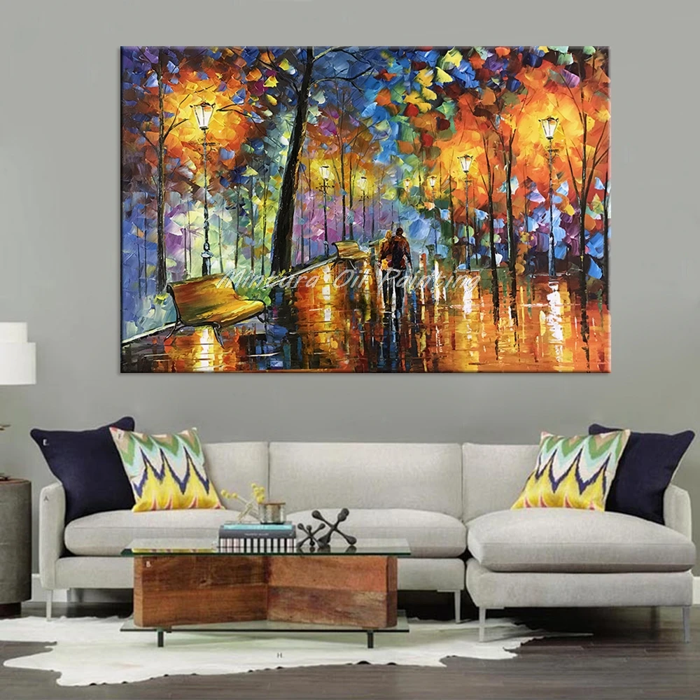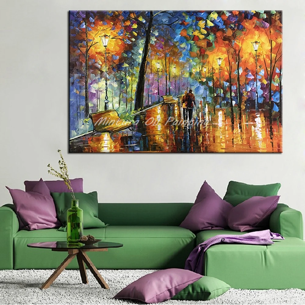 Comprar Grande Amante Chuva Rua Lâmpada de Árvore Pintado À Mão Pintura A Óleo Da Paisagem Na Arte Da Parede Da Lona Retratos Da Parede Para Sala de estar Em Casa decoração Baratas Online Preço.