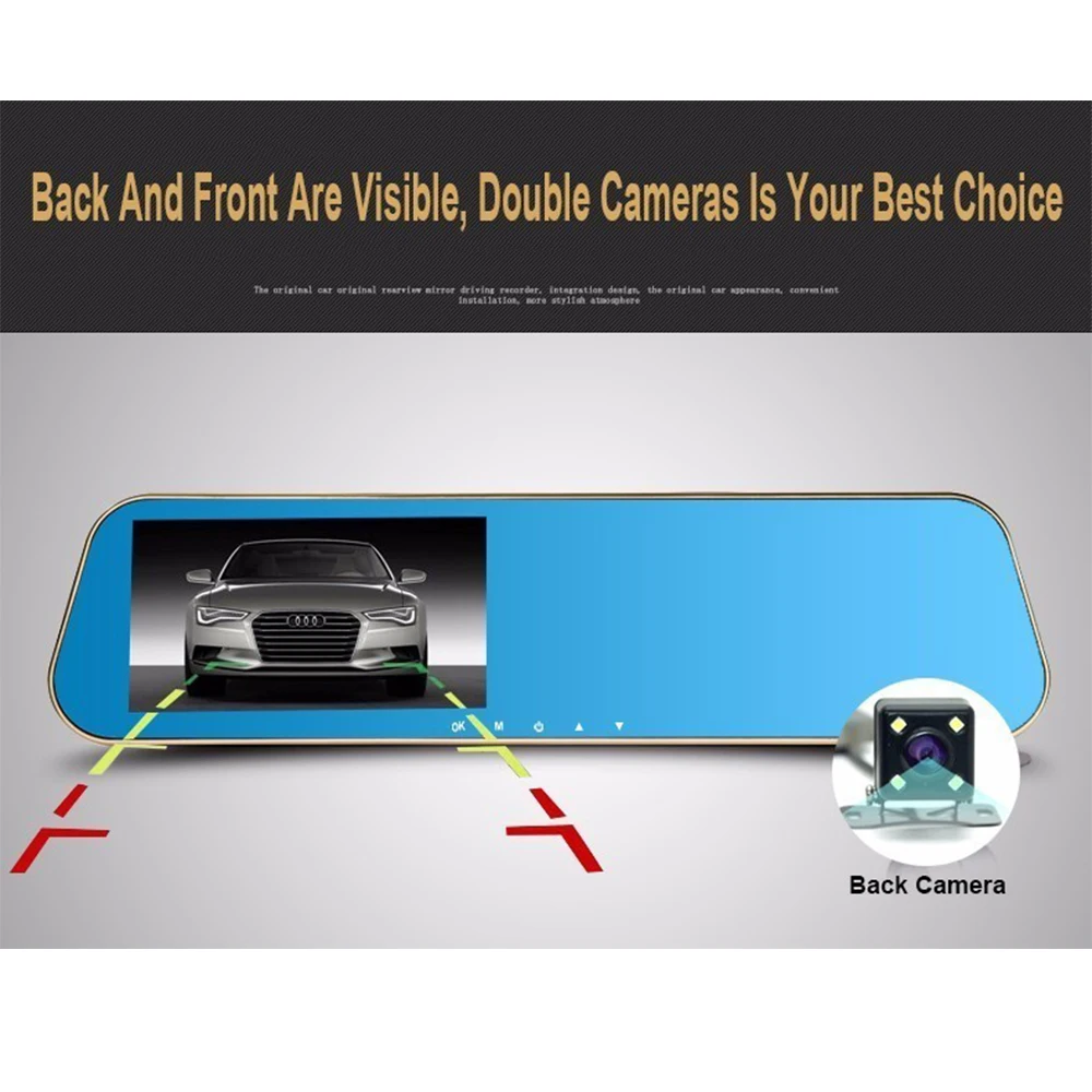 . Melhor Gryan 4.3 \"1080 p Espelho Retrovisor Do Carro Espelho DVR Carro Full HD Câmera Dupla Traço Câmera de Vídeo Do Carro Dupla len Espelho Dashcam Dashcam Barato Online Preço.