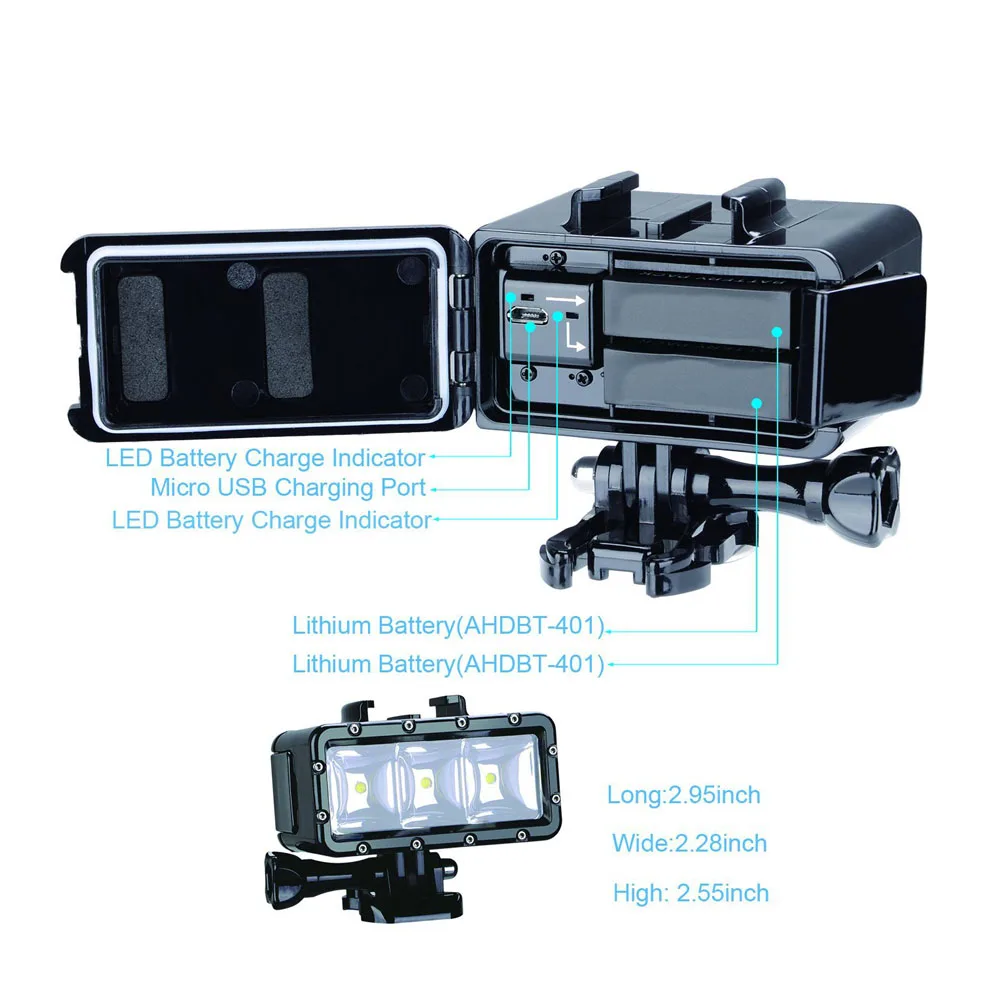 Comprar Ir Pro 30 m Mergulho Flash Led Luz Subaquática da lâmpada (2xHero4 Baterias) para GoPro Hero 6 5 3 + Sessão de Xiaomi yi 4 K + lite SJCAM sj4000 Baratas Online Preço.