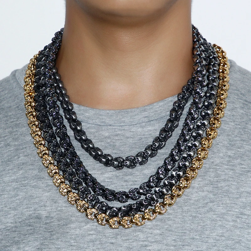 Comprar Kalen 55 ~ 70 cm Longo do Crânio Do Punk Colares Para Homens Correntes de Ligação de Aço Inoxidável Escovado e Polido Charme Gótico Masculino jóias 2018 Baratas Online Preço.