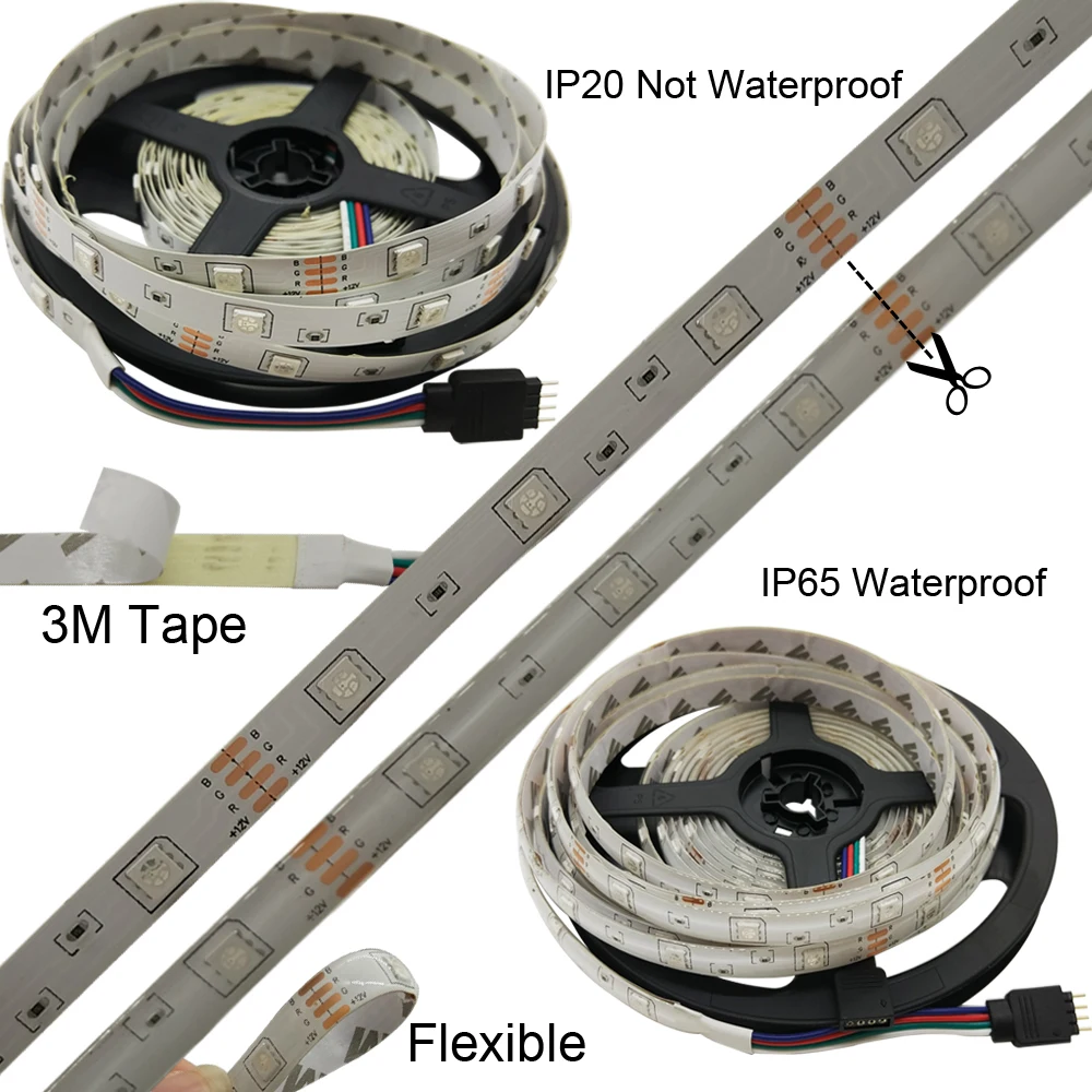 Comprar LED Light Strip RGB SMD Levou 5050 LED RGB Diodo Emissor de Luz À Prova D Água Fita Fita Fita DC 12 v RGB controlador tira Conjunto Completo Baratas Online Preço.