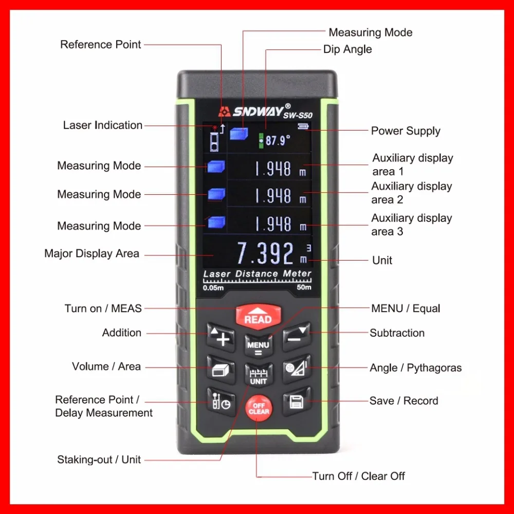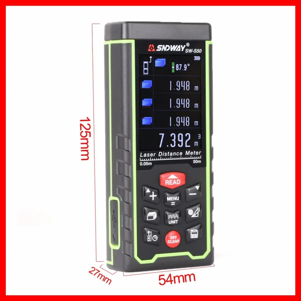 Comprar Tela colorida 50 m Sndway laser range finder distância fita métrica trena medidor de roleta ferramenta régua medida telêmetro Eletrônico Baratas Online Preço.