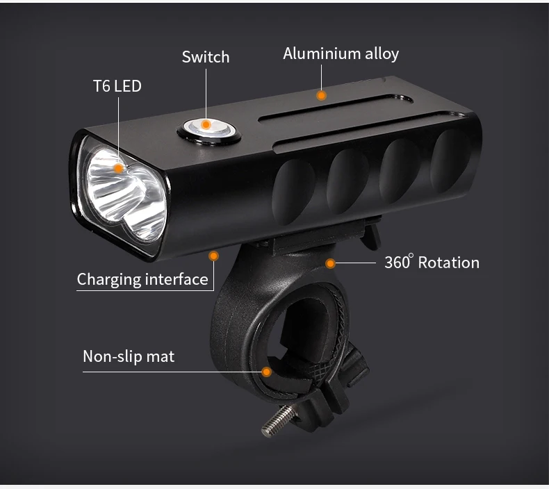 . Melhor Trabalho 6 H LED Bicicleta Da Bicicleta Da Frente de Luz Construído em 18650 Bateria Recarregável USB Acessórios de Metal Frente Ciclismo Lanterna lâmpada Barato Online Preço.