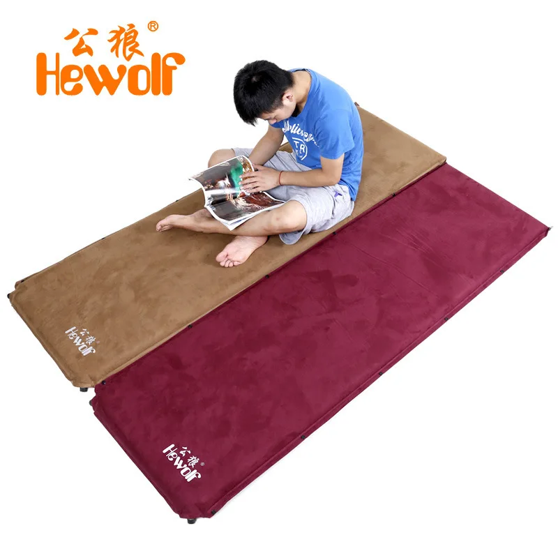 . Melhor 6.5 cm de espessura hewolf camurça colchão à prova de umidade almofada inflável automática acampamento ao ar livre tapete tenda mat cochilo com cobre boca Barato Online Preço.