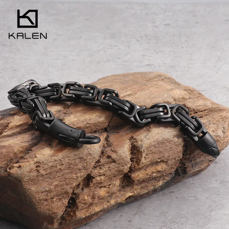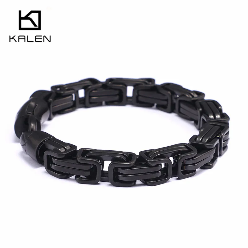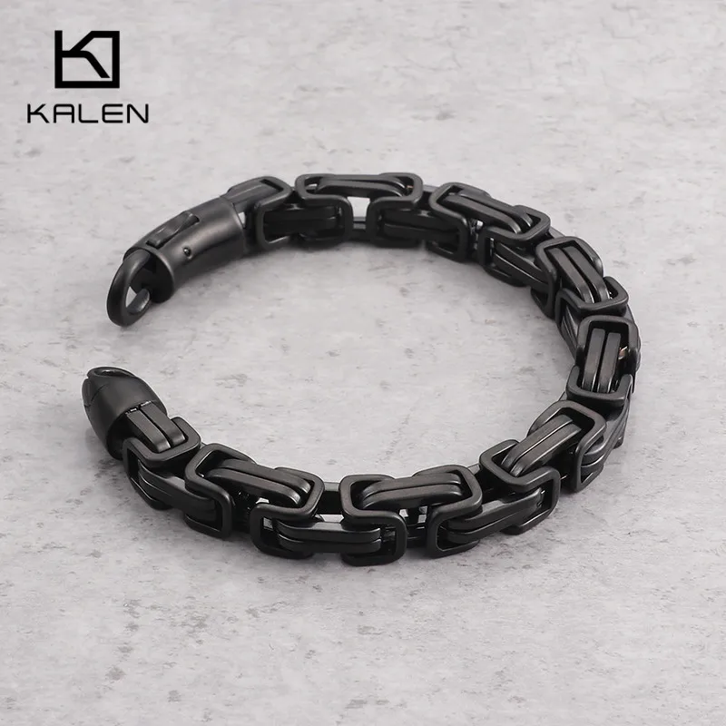 Comprar KALEN Alta Polido Preto Elo Da Cadeia do Aço Inoxidável Pulseira Para Homens Rocha Masculino 22 cm Envoltório Preto Bizantino Pulseira Motociclista jóias Baratas Online Preço.