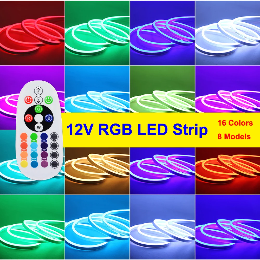 Comprar Luz de Néon flexível RGB Tira CONDUZIDA DC12V 1M 5M 10M 15 m SMD5050 20 m Iluminação Mesa À Prova D Água LED Home Decor DIY luzes do dia das bruxas Baratas Online Preço.