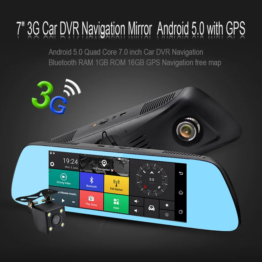 Comprar TOPSOURCE Novo 7 \"3g Especial DO CARRO Espelho Retrovisor Do Carro DVR DVRs Câmera Android 5.0 Com GPS de Navegação Automoblie gravador de vídeo Baratas Online Preço.