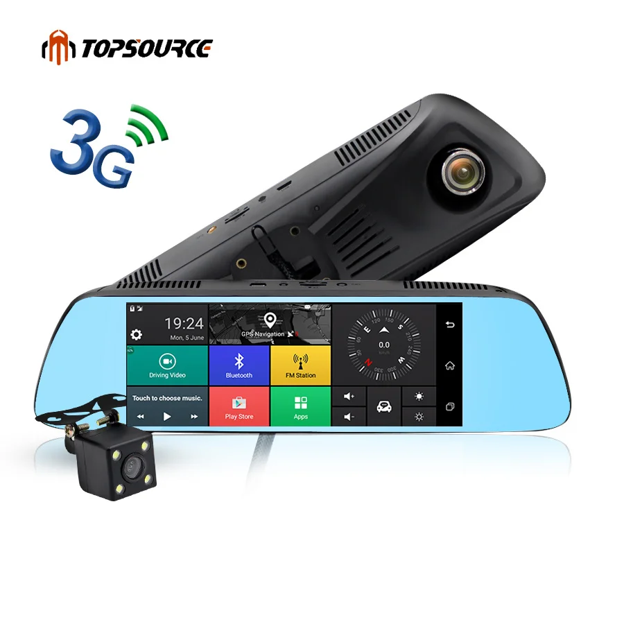 . Melhor TOPSOURCE Novo 7 \"3g Especial DO CARRO Espelho Retrovisor Do Carro DVR DVRs Câmera Android 5.0 Com GPS de Navegação Automoblie gravador de vídeo Barato Online Preço.