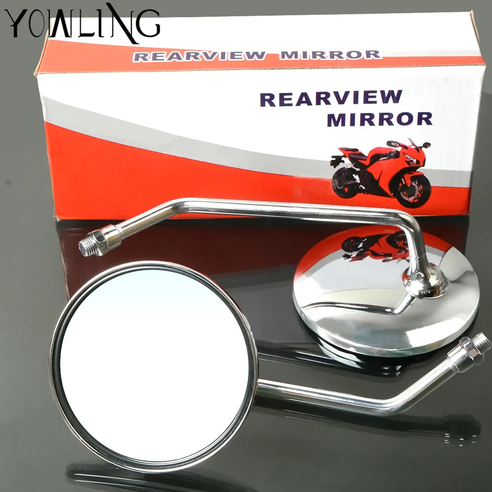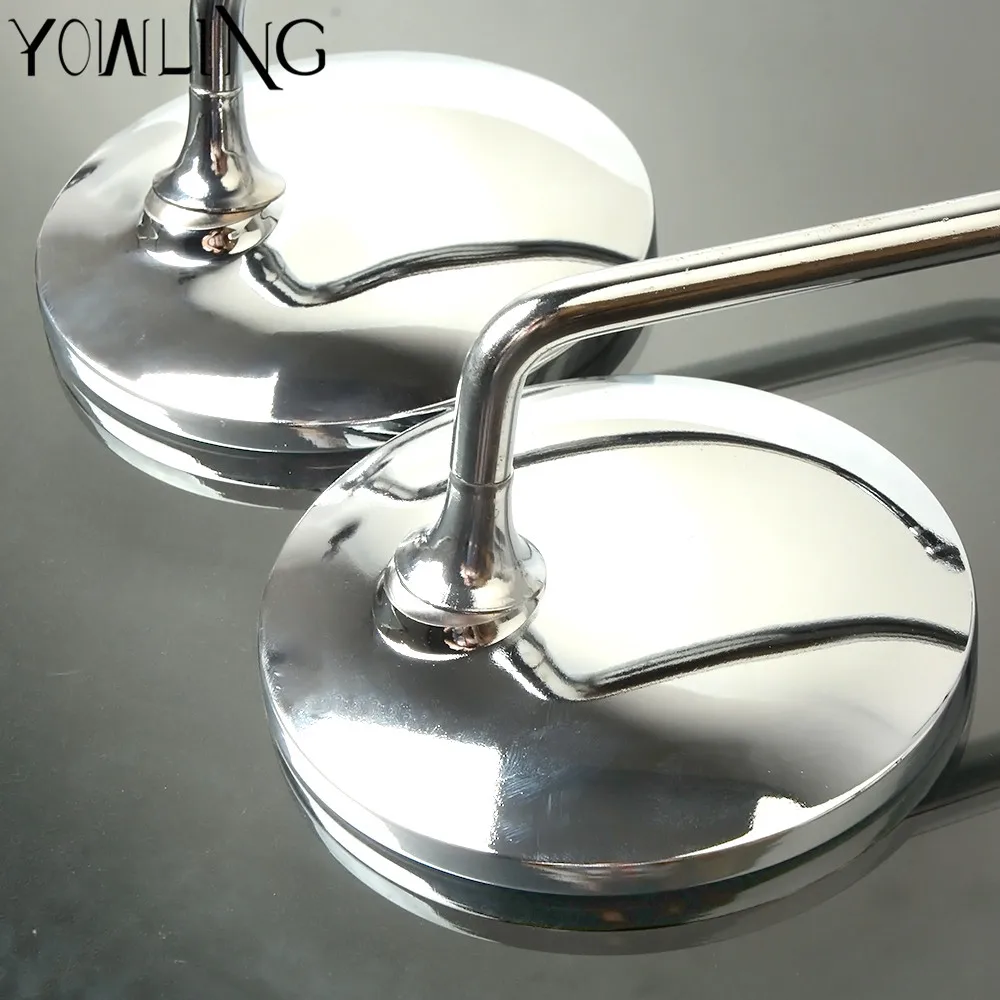 Comprar Universal motos espelhos chrome rodada espelho da motocicleta haste longa para Harley honda yamaha kawasaki suzuki ducati Aprilia ktm Baratas Online Preço.
