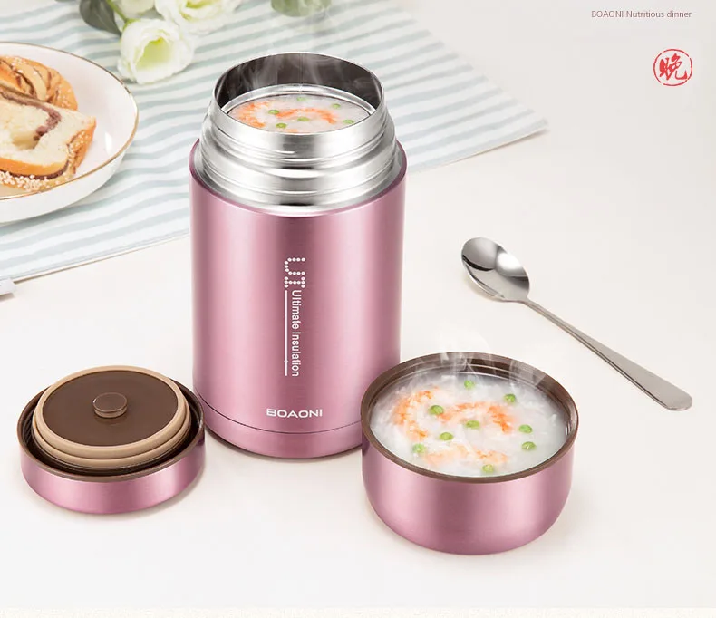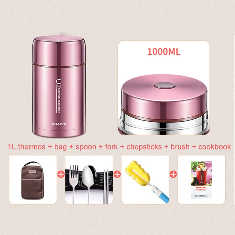 Comprar BOAONI 1000 ml Alimentos Jarra Térmica Com Isolamento A Vácuo Garrafa Térmica de Sopa Containers Lunch Box com Colher Dobrável de Aço Inoxidável 18 8 Baratas Online Preço.