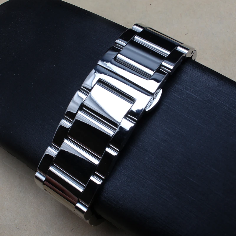Comprar Metal polido prata preto Pulseira 20mm 22mm 24mm Faixa de Relógio de Aço Inoxidável Homens Pulseira de Prata Pulseira de Substituição sólida Ligação Baratas Online Preço