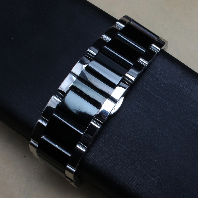 Comprar Metal polido prata preto Pulseira 20mm 22mm 24mm Faixa de Relógio de Aço Inoxidável Homens Pulseira de Prata Pulseira de Substituição sólida Ligação Baratas Online Preço.