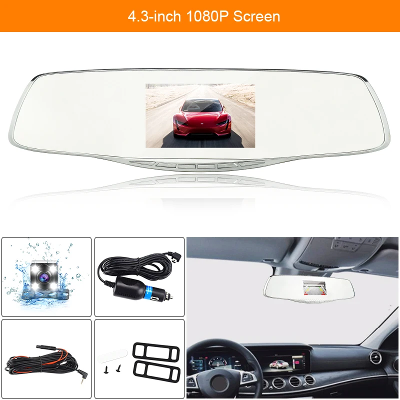 Comprar Traço cam câmera do carro dvr de lente dupla espelho retrovisor auto dashcam recorder registrator vídeo do carro do Veículo full hd frente e traseiro Baratas Online Preço