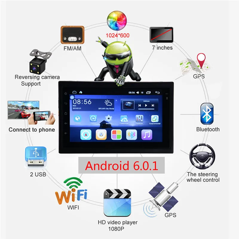 Comprar Universal Android 6.0 double Din Car GPS Navigator Multimedia 2 WI FI Áudio Video Player 7 polegada MP5 FM Rádio Do Carro com Mapa Europa Baratas Online Preço.