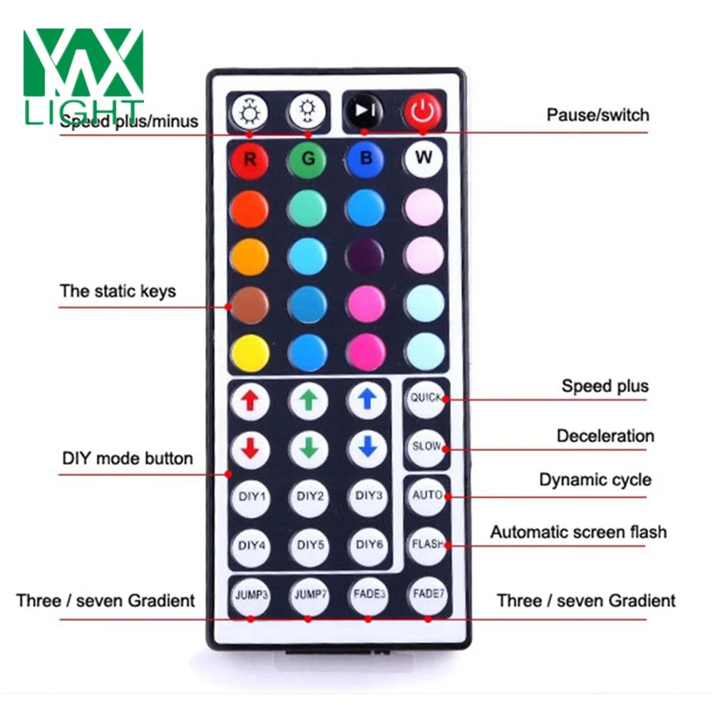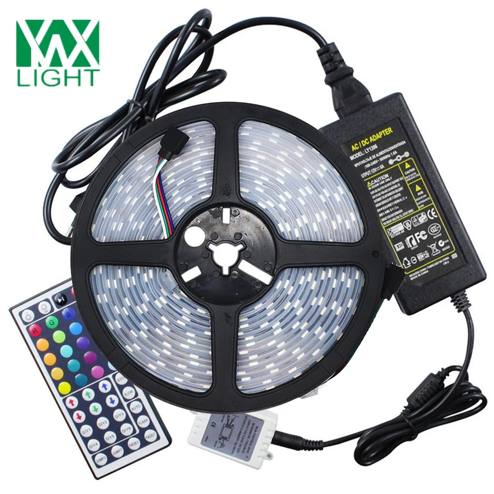 Comprar 5 M Flexível LEVOU Tiras de Luz 5050 SMD RGB IP 67 À Prova D Água 72 W CONDUZIU a Luz de Tira 44 Teclas de Controle Remoto 5A Adaptador UE PLUGUE Baratas Online Preço.