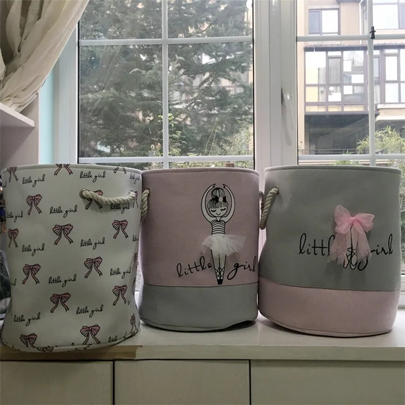 . Melhor FullLove 35*40 cm Rosa Cesta de Lavanderia para Roupas Sujas Algodão Ballet Menina Impressão Arco Brinquedos Organizador de Armazenamento Em Casa organização Barato Online Preço.