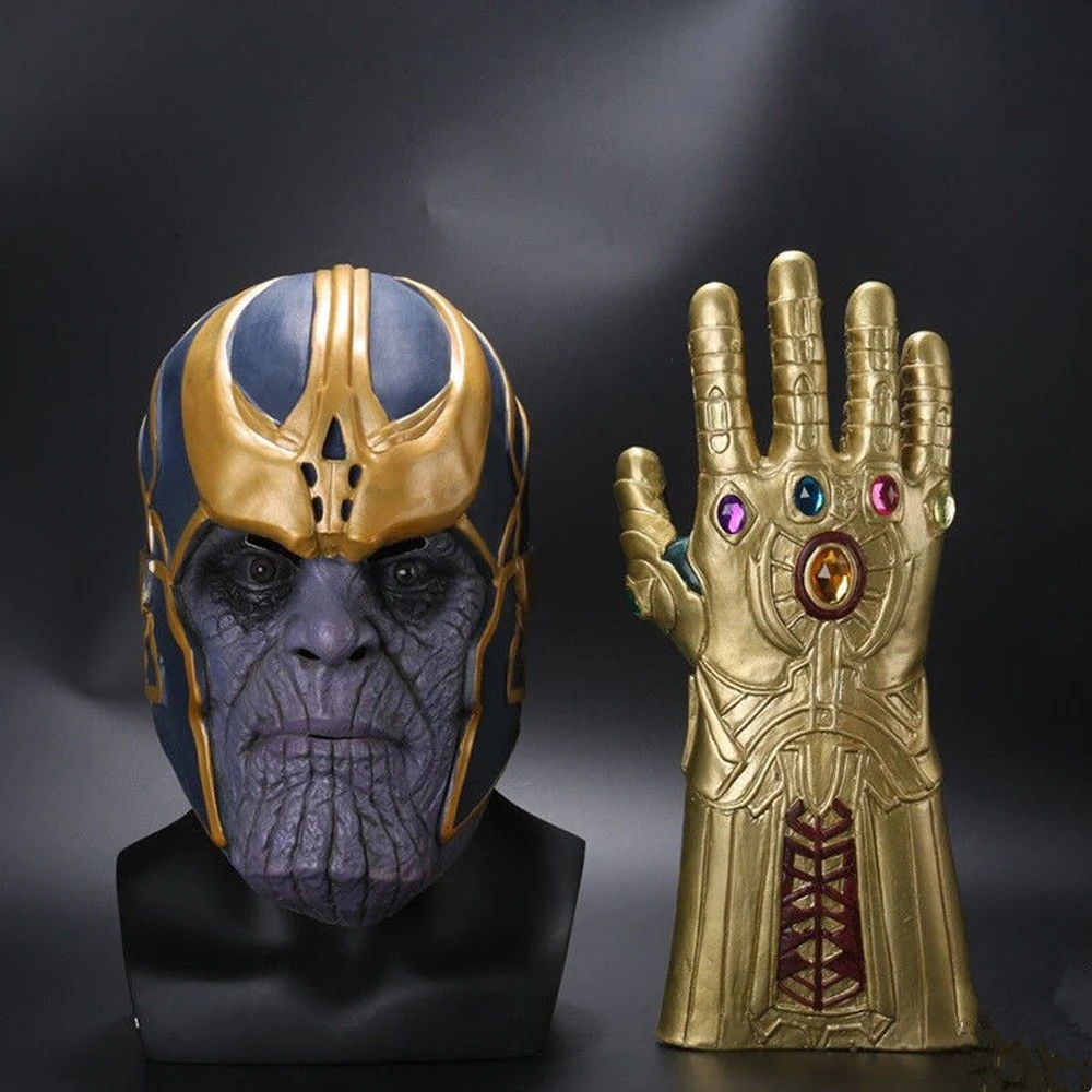 Comprar Vingadores Thanos Infinito Guerra Cos Máscara de Látex Luvas Avengers Superhero Halloween Party Props Para Adlut Baratas Online Preço.