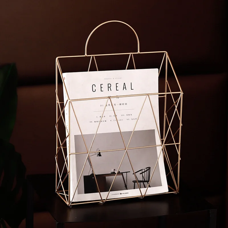 Comprar Cesta De Armazenamento de metal Ouro Moda Nordic Elegante Parede Pendurado Cesta de Armazenamento De Ferro Portátil Net Mesa Jornal Revista Organizer Baratas Online Preço