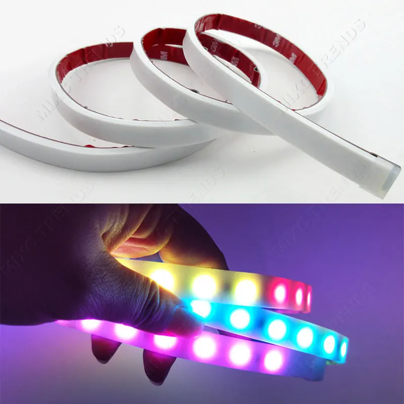 Comprar LEDS Car styling Tira Conduzida RGB Branco Amarelo VERMELHO Cauda Transformar a Luz Tronco Dinâmico Fluxo Aviso DRL Luzes do Compartimento de Bagagem Baratas Online Preço.