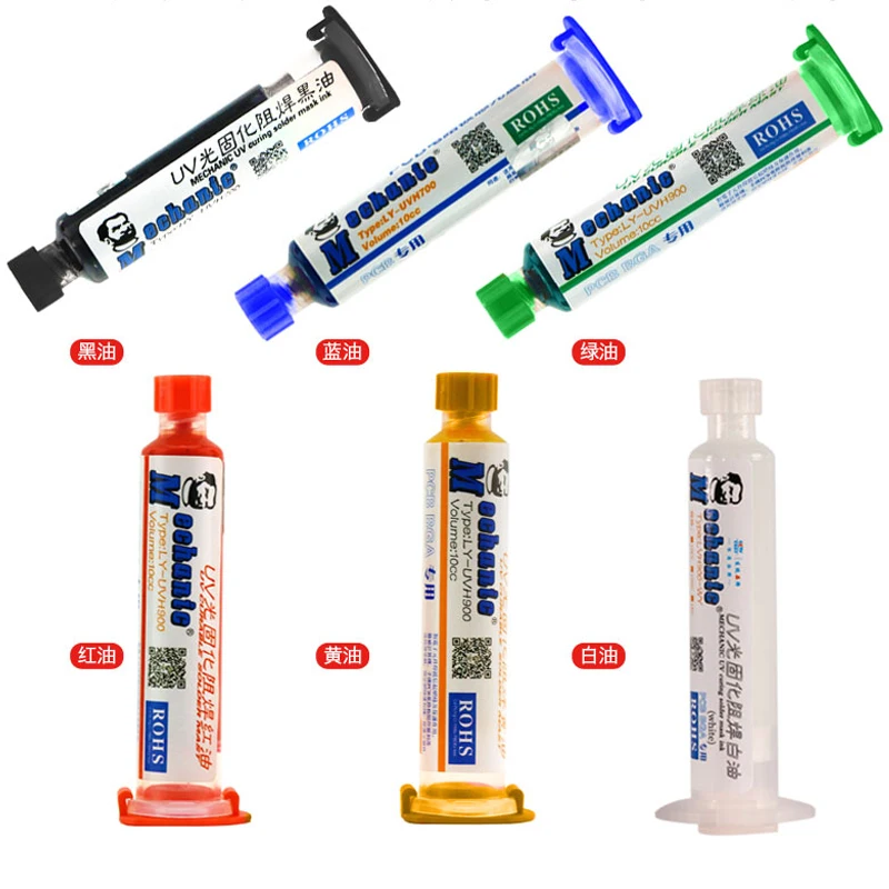 Comprar MECHANUC 6 pcs 6 cor UV Máscara De Solda Curável + agulhas + lâmpada UV Máscara 10CC para PCB placa de Circuito proteger óleo de Pasta De Solda Flux Baratas Online Preço.