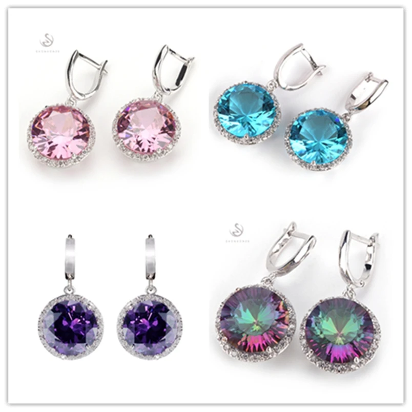 Comprar SHUNXUNZE brincos para as mulheres Acessórios de Luxo Rosa Roxo light blue Rainbow Prata Banhado A Zircônia Cúbica R146 R486 R737 R749 Baratas Online Preço.