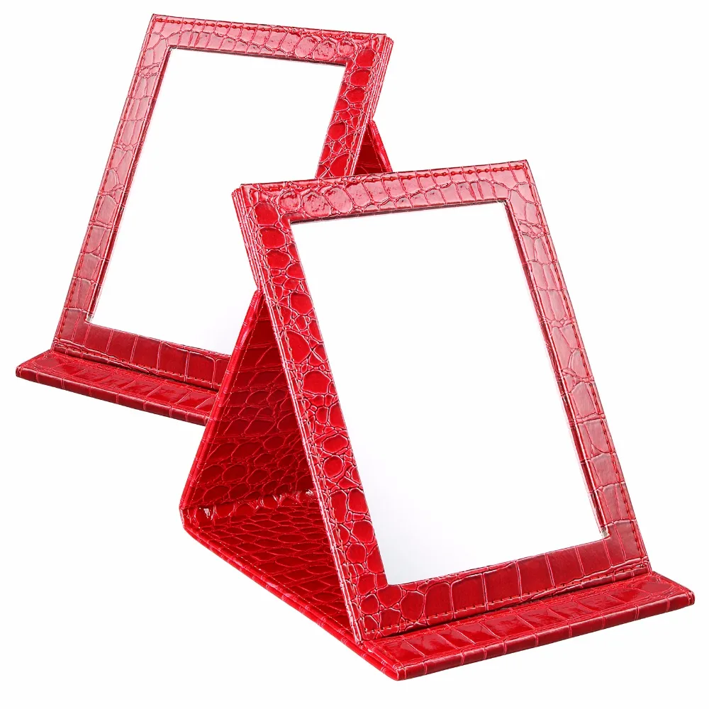 . Melhor Tamanho L 18*25.5*1.6 CM Espelho de Maquiagem Portátil Dobrável Espelho de Maquilhagem Alligator Padrão de Couro Das Mulheres de Beleza Make Up Barato Online Preço.