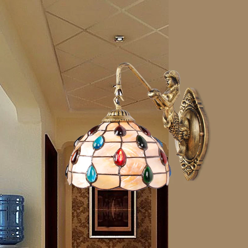Comprar Modern pastoral Shell cauda Sereia Lâmpada de Parede LEVOU 8 polegada Mediterrâneo Tiffany lâmpada de Parede de Frente do Espelho Luz Home Lighting Indoor Baratas Online Preço.