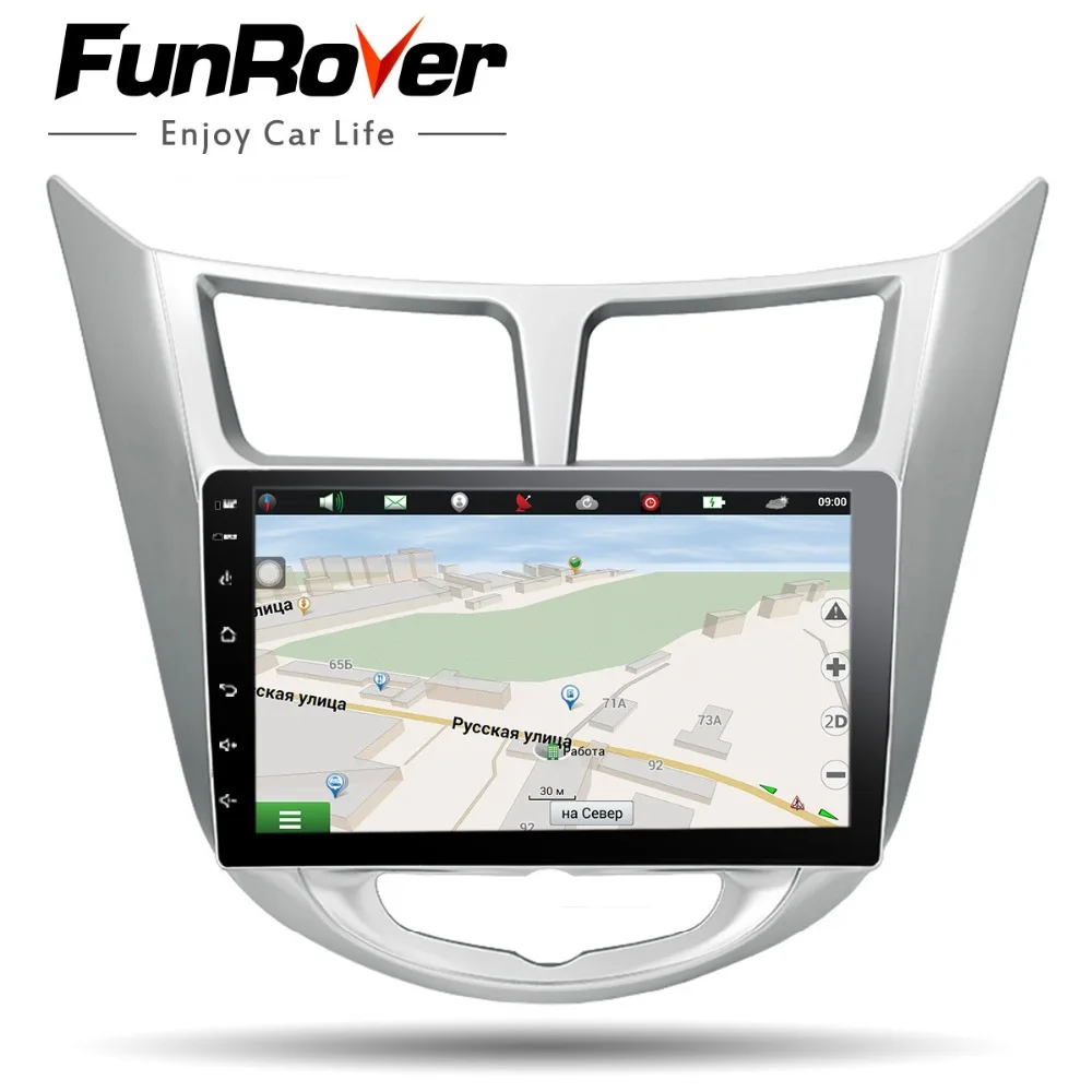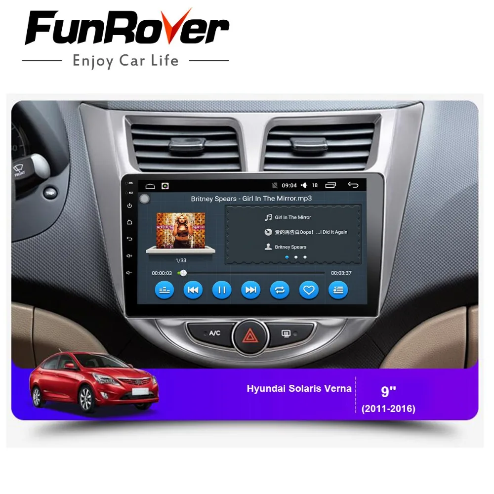 Comprar Funrover 8 Octa núcleo Android 8.0 rádio do carro dvd player multimídia para Hyundai accent Solaris Verna i25 gps navegação estéreo navi Baratas Online Preço.